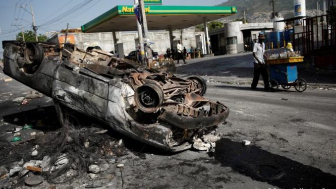 The civil unrest and rioting in Haiti continues despite the price roll back ordered by Prime Minister Jack Guy Lafontant. Protesters blocked streets in Port-au-Prince , staged gun firing and burning vehicles that were crossing the protest lines leaving citizens in distress.