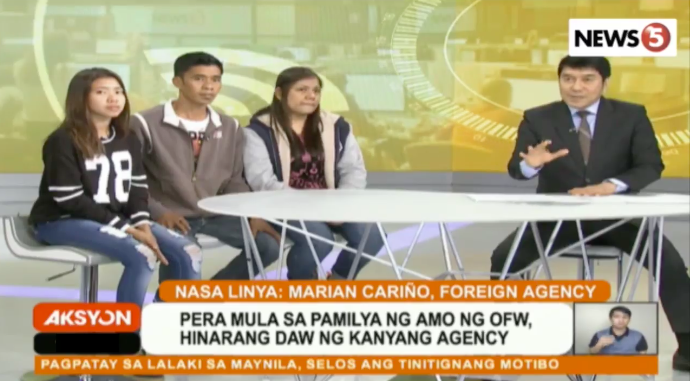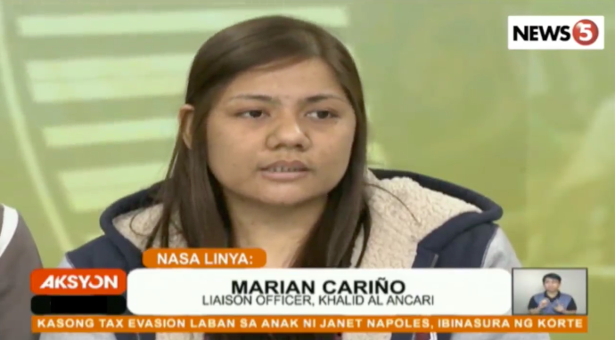 During an episode in Aksyon by Raffy Tulfo, they contacted Marian Carino, the liaison officer of Khalid Al Ancari. Raffy questioned Carino why she’s taking a large chunk of the money when it was supposed to go to Lilibeth.