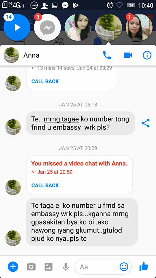 An OFW in Kuwait revealed that her agency asked her to pay $400 to break the contract. [Image Credit: Kate Camagos Basco/Facebook]