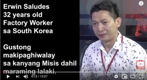 Erwin Saludes, 32 years old and an OFW working as a factory worker in South Korea went to Raffy Tulfo to seek advice and assistance regarding his wife, Jessica Saludes, 29 years old who was allegedly caught having numerous illicit affairs. Erwin Saludes said her lovers and many witnesses admitted to him about Jessica’s many adulterous relationships.