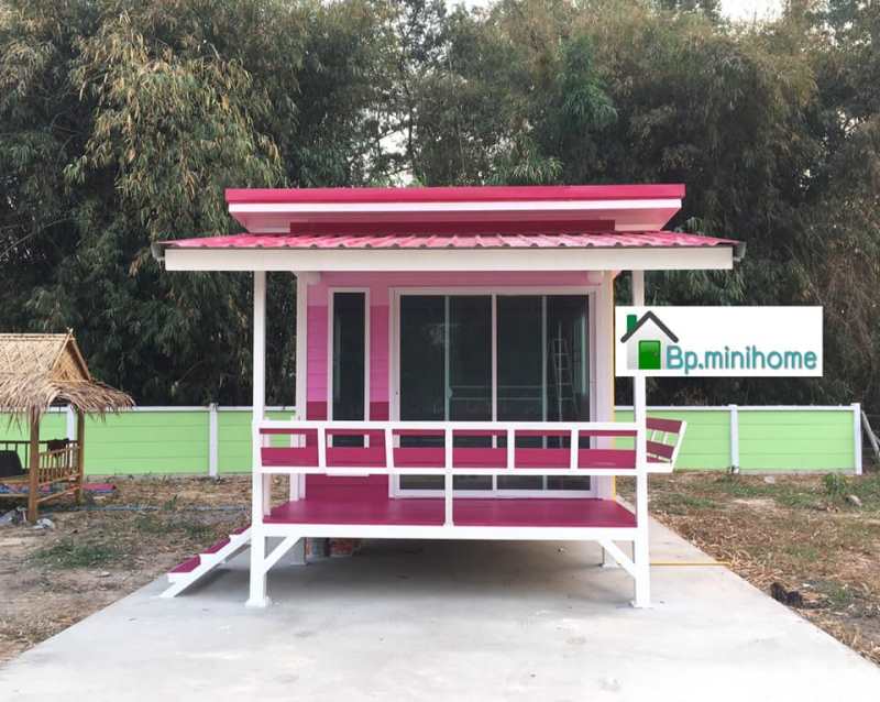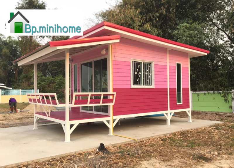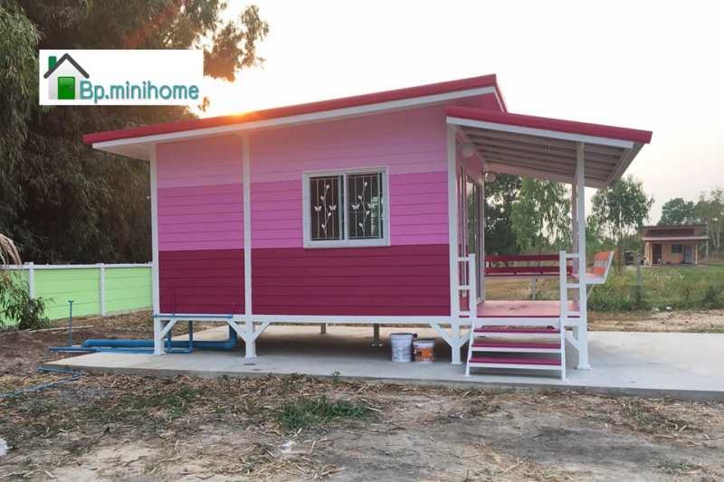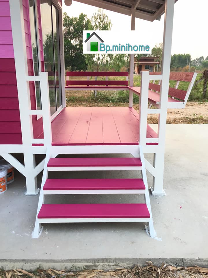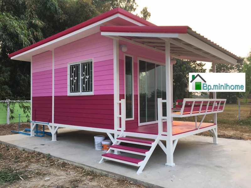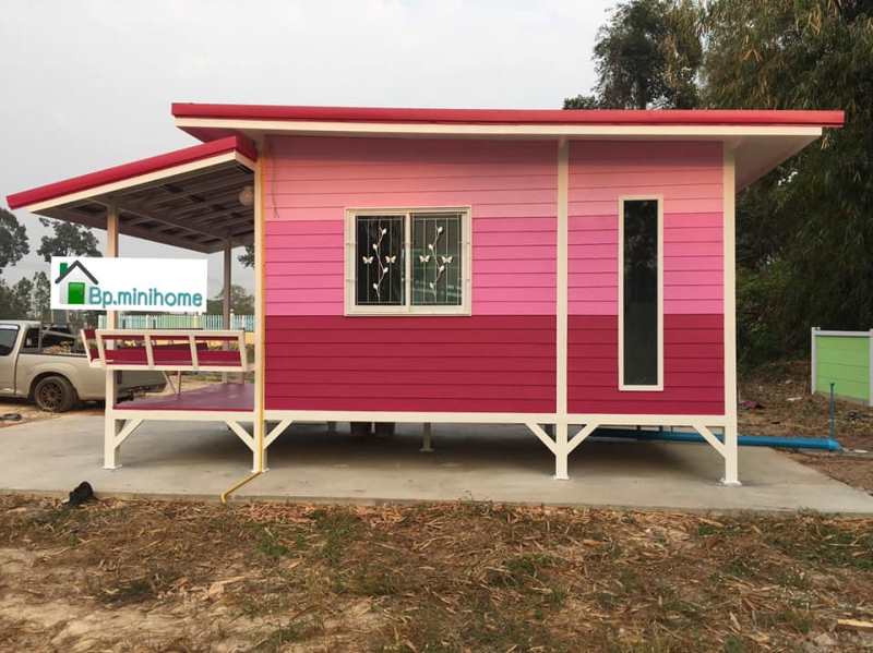 It has all the rooms that a small family or a young adult needs. The exterior is simple, with smooth cement finish and painted with a combination of dark and light pink . It also uses the modern hip roof design with elevated floor area, making it look more contemporary.
