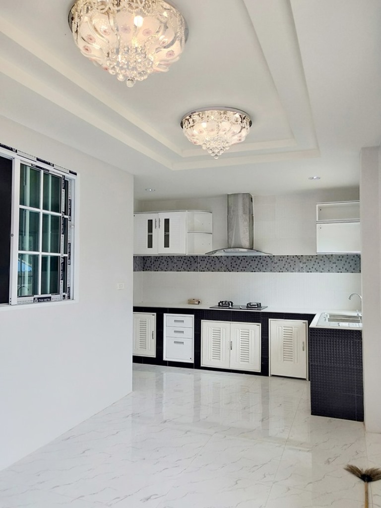 The kitchen is very spacious. To help maximize the space, the dining room and the kitchen are combined. From the kitchen is another door leading to the service area at the back.